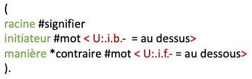Afin de pallier les insuffisances des modèles symboliques actuels, j’ai construit un métalangage qui présente les mêmes avantages que les langues naturelles, à savoir un mécanisme inhérent de construction de réseaux sémantiques, mais qui n’a pas leurs inconvénients, puisqu’il est sans ambiguïté et calculable.